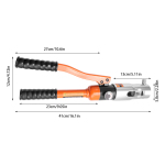 Міцний Циліндр з високоякісної сталі Cr40, головка кліщів з алюмінію та форми з 42Crmo з процесами окислення, загартування та чорніння є зносостійкими та стійкими до іржі, забезпечуючи чудову продуктивність для тривалого використання. Практичний і потужний Цей продукт має гідравлічну конструкцію з максимальним зусиллям обжиму 10T, що може допомогти вам завершити обжим із меншими зусиллями. Форми V12, V15, V18, V22, V28 можуть задовольнити різні потреби використання. Вишуканий дизайн Головка плоскогубців прикріплена невеликим гвинтом, і ви можете повертати її на 360° за потреби. Під час використання плоскогубці щільно захоплюють і стискають предмет, не падаючи. Легко транспортувати та зберігати Ящик для інструментів із вбудованою ручкою та його компактна та легка (11,02 фунта) конструкція дозволяють легко зберігати ці інструменти, не втрачаючи та не пошкоджуючи їх, і їх можна зручно переносити на будь-яке робоче місце. Відмінна ефективність ущільнення Ущільнювальне кільце та поршень проти витоку можуть добре ущільнити циліндр і зменшити витікання масла. Простота використання Ергономічний дизайн використовує принцип важеля та високу поворотну пружину для легкого використання. Зручна ручка Ергономічна ізольована рукоятка з хвилеподібним дизайном зручно лежить в руці, не ковзає і зменшує втому руки. Реле скидання тиску Реле тиску полегшує безпечне та надійне скидання тиску після опресовування. Стопорний штифт Його можна легко зняти, щоб змінити форму. Це також запобігає падінню завантажених форм. Технічні характеристики Колір: Помаранчевий Тип ручки: Ергономічний Модель: CW-1632 Хаб: 20 мм/0,79 дюйма Матеріальний: Алюміній, сталь Cr40, 42Crmo Процедура: Оксидована, загартована та почорніла обробка Максимальна сила обтиску: 10 т/100 кн Характеристики V-подібних форм: V12, V15, V18, V22, V28 Діаметр отвору: 12mm/0.47in Макс. ширина головки: 58 мм/2,28 дюйма Довжина головки плоскогубців: 13 см/5,12 дюйма Закритий отвір ручки: 12cm/4.72in Довжина ручки: 23 см/9,06 дюйма, 27 см/10,63 дюйма Загальна довжина: 41 см/16,14 дюйма Розмір пакета: 45*22*11 см/17,72*8,66*4,33 дюйма Вага брутто: 5,5 кг/12,13 фунтів Вага нетто: 5 кг/11,02 фунтів У комплекті 1* обтискні кліщі 1* форма метелика 5* V форми 1* Інструментарій 1* Посібник англійською мовою Технічні характеристики | Колір | Помаранчевий | Тип ручки | Ергономічний | | Модель | CW-1632 | Хаб | 20 мм/0,79 дюйма | | Матеріал | Алюміній, сталь Cr40, 42Crmo | Процедура | Оксидована, загартована та почорніла обробка | | Максимальна сила обтиску | 10 т/100 кн | Характеристики V-подібних форм | V12, V15, V18, V22, V28 | | діаметр отвору | 12mm/0.47in | Ширина плоскогубців макс | 58 мм/2,28 дюйма | | Довжина головки плоскогубців | 13 см/5,12 дюйма | Закритий отвір ручки | 12cm/4.72in | | Довжина ручки | 23 см/9,06 дюйма, 27 см/10,63 дюйма | Загальна довжина | 41 см/16,14 дюйма | | Розмір упаковки | 45*22*11 см/17,72*8,66*4,33 дюйма | Вага брутто | 5,5 кг/12,13 фунтів | | Вага нетто | 5 кг/11,02 фунтів | Примітки 1. Перед покупкою перевірте специфікацію продукту. 2. Будь ласка, уважно прочитайте посібник користувача англійською мовою та етикетку виробу перед використанням і зверніть особливу увагу на інструкції з безпеки, що містяться в них. 3. Категорично забороняється використовувати інструмент без форми. Будь ласка, використовуйте форму правильного розміру та не засовуйте пальці у форму під час використання. 4. Будь ласка, не розчавлюйте кабелі або дроти під напругою. 5. Будь ласка, дозвол