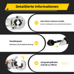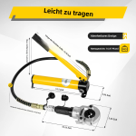 Дев'ятеро гине В упаковці дев’ять матриць форм V і TH, ви можете використовувати їх для задоволення різних потреб. Гідравлічний циліндр Гідравлічні обтискні кліщі оснащені гідравлічним циліндром, який економить працю та забезпечує потужну потужність для розрізання дроту. Довга ручка Ручка цього гідравлічного обтискного інструменту подовжена, тому вам потрібно використовувати менше зусилля, щоб завершити роботу. Довгий гідравлічний шланг Довжина шланга цього гідравлічного інструменту для обтиску становить 113 см/44,48 дюйма, вам буде легше працювати з цим довгим гідравлічним шлангом. Поворотна на 360° головка Головку цього гідравлічного обжимного інструменту можна повертати на 360°, що полегшує та прискорює з’єднання проводів. Велика сила тиску Сила тиску цього гідравлічного обтискного інструменту становить 6 Т, він може легко прорізати матеріали, і ця велика сила робить з’єднання міцнішим і стабільнішим. Змінні губки Затискачі цих гідравлічних обтискних кліщів можна замінити, і ви можете вибрати затискачі відповідно до своїх фактичних потреб. Знімна голова Головку цього гідравлічного обтискного інструменту можна зняти для зручності експлуатації та транспортування. Проста експлуатація Вага і розмір цього гідравлічного обжимного інструменту легкі і невеликі, ви можете використовувати його без особливих зусиль. Ручний поршневий клапан Вентиль цього гідравлічного кримпера можна відкривати вручну, керувати тиском можна, повертаючи його. Технічні характеристики Вага брутто: 8,24 кг/18,16 фунтів Вага нетто: 7,5 кг/16,53 фунтів Розмір пакета: 38x23x16 см/14,96x9,05x6,29 дюймів Розмір продукту: 32x18x13 см/12,59x7,08x5,11 дюймів Прес-щелепа: V-подібний 12-28мм, ТН-подібний 16-32мм Довжина гідравлічного шланга: 113 см/44,48 дюйма Сила тиску: 6T Хаб: 0,63 дюйма (16 мм) Група товарів: Гідравлічні обтискні кліщі Тип товару: Пресові губки для мідних труб Вміст пакету 1x гідравлічні притискні кліщі 9x матриці 1x коробка Більш детальна інформація Технічні характеристики | Вага брутто | 8,24 кг/18,16 фунтів | Вага нетто | 7,5 кг/16,53 фунтів | | Розмір упаковки | 38x23x16 см/14,96x9,05x6,29 дюймів | Розмір продукту | 32x18x13 см/12,59x7,08x5,11 дюймів | | Прес-щелепа | V-подібний 12-28мм, ТН-подібний 16-32мм | Довжина гідравлічного шланга | 113 см/44,48 дюйма | | Сила стиснення | 6T | Хаб | 0,63 дюйма (16 мм) | | Товарна група | Гідравлічні обтискні кліщі | Тип продукту | Пресові губки для мідних труб | Примітка 12 мм/0,5 дюйма 15 мм/0,6 дюйма 18 мм/0,7 дюйма 22mm/0.9inch 28 мм/1,1 дюйма 16 мм/0,6 дюйма 20 мм/0,8 дюйма 25 мм/1,0 дюйма 32 мм/1,6 дюйма 1. Ви повинні встановити обтискні плашки. 2. Помістіть фітинги труб у матриці. 3. Відкрийте вентиль і встановіть на ньому потрібний тиск. 4. Кілька разів натисніть на ручку. |