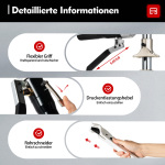 Міцний Виготовлений з алюмінієвого сплаву, виріб є стійким до корозії та високою міцністю, тому ви можете використовувати його протягом тривалого часу. Легко чиститься Гладка поверхня і проста структура дозволяють після використання витерти пил або залишки рушником. Економія часу При використанні подвійного джига, за умови, що аксесуари не змінюються, доступні два типи джига. Заявка Цей продукт використовується для монтажу та ремонту труб теплої підлоги. Зручний для користувача дизайн Прес-щипці мають головку, що обертається на 360°, для легкого доступу та експлуатації, а також компактний розмір, що робить їх ідеальними для тісних місць. Відмінна продуктивність Потовщений масляний циліндр і тиск 3T дозволяють легко опресувати. Щипці-розширювачі 4 різних розмірів полегшують розширення труб, а труборізом можна легко розрізати більшість труб PEX. Змінні розширювальні головки Розширювальні головки є взаємозамінними, тому ви можете вибрати відповідні розширювальні головки (Φ 0,63", 0,78", 0,98", 1,25") відповідно до ваших фактичних потреб. Легко транспортувати У пластиковому футлярі з пазами та пряжками можна акуратно та безпечно зберігати ці інструменти, дозволяючи переносити їх на робоче місце з меншими зусиллями. Довгі ручки Ергономічні ручки пресових і розширювальних щипців мають відповідну довжину для зручного захоплення та економії праці. Крім того, точковий реле тиску на прес-кліщах забезпечує зручну роботу. Зворотний клапан Це дозволяє скинути тиск у гідравлічній системі, щоб запобігти пошкодженню обладнання. Технічні характеристики Модель: SD-1632Y Друкуй: Гідравлічний Тип ручки: Ергономічний Матеріальний: Алюмінієвий сплав Колір: Срібло, чорний Потрібна збірка: Так. Друк: 3T Хаб: 28 мм/1,1 дюйма Форми прес-щипців: φ16-20 мм/0,63-0,78 дюйма, φ25-32 мм/0,98-1,25 дюйма Діапазон тиску: φ16-32 мм/0,63-1,26 дюйма Діапазон розширення: Φ16, 20, 25, 32 мм (Φ 0,63", 0,78", 0,98", 1,25") Розширювальні головки: Φ16*2,2, 20*2,8, 25*3,5, 32*4,4 мм (Φ0,63", 0,78", 0,98", 1,25") Розмір плоскогубців (Д*Д*В): 8*12*37 см/3,15*4,72*14,57 дюйма Розмір прес-щипців (Д*Д*В): 3*23*27 см/1,18*9,06*10,63 дюйма Вага щипців: 2,5 кг/5,5 фунтів Вага щипців для розкидання: 1 кг/2,2 фунта Вміст пакету 1* плоскогубці 1* щипці 1* труборіз 2* пресувальні вилки (для 0,63" і 0,78", 0,98" і 1,25") 4* головки розширення 1* пластиковий футляр Технічні характеристики | Модель | SD-1632Y | Тип | Гідравлічний | | Тип ручки | Ергономічний | Матеріал | Алюмінієвий сплав | | Колір | Срібло, чорний | Потрібна збірка | Так. | | Друк | 3T | Хаб | 28 мм/1,1 дюйма | | Прес-щипці форми | φ16-20 мм/0,63-0,78 дюйма, φ25-32 мм/0,98-1,25 дюйма | Область друку | φ16-32 мм/0,63-1,26 дюйма | | Область розширення | Φ16, 20, 25, 32 мм (Φ 0,63", 0,78", 0,98", 1,25") | Розпростерті голови | Φ16*2,2, 20*2,8, 25*3,5, 32*4,4 мм (Φ0,63", 0,78", 0,98", 1,25") | | Розмір плоскогубців (Д*Д*В) | 8*12*37 см/3,15*4,72*14,57 дюйма | Розмір щипців (Д*Д*В) | 3*23*27 см/1,18*9,06*10,63 дюйма | | Вага щипців | 2,5 кг/5,5 фунтів | Вага кліщів розкидач | 1 кг/2,2 фунта | Примітка 1. Розріжте труби PEX прямокутно, щоб створити чистий рівний край. 2. Вставте трубку через мідне кільце. 3. Розтягніть насадку розширювальними кліщами. 4. Вставте роз'єм. 5. Натисніть на мідне кільце в потрібне положення за допомогою щипців. 6. Доки мідне кільце не досягне вказаного положення, натисніть кнопку повернення масла. |