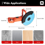 Глибина різання канавок регулюється Глибину різання можна вільно регулювати до 135 мм. Безпечне та ергономічне керування. Забезпечення безпеки користувача завдяки захисту від витоку електричного струму Напружений Швидкий автоматичний фальцювальний настінний бак, призначений для швидкого і чистого різання настінних погонажів. Без інструментів та другого процесу. Глибину ріжучої канавки можна регулювати довільно Автоматичне водопостачання Верстат для різання стін має конструкцію подачі води, яка може ефективно знизити температуру пильного полотна Поворотна ручка Штроборіз має ручку, яку можна повертати на 90°. Під час роботи ви можете встановлювати та регулювати різні робочі кути простим натисканням перемикача Міцний і довговічний Електрична пила для бетону виготовлена з високоякісного алюмінієвого сплаву та матеріалів ABS, які є міцними, зносостійкими, ударостійкими та стійкими до іржі, що забезпечує стабільну передачу енергії та тривалий термін служби. Висока ефективність Завдяки високій швидкості до 3800 об/хв і гострим алмазним диском ця потужна електрична пила для бетону потужністю 3000 Вт може легко проникати в плитку, бетон, цегляну кладку та інші будівельні стіни на високих швидкостях, значно підвищуючи ефективність вашої роботи. Стабільна робота Він оснащений двигуном із чистої міді, який має високу потужність, низьке енергоспоживання, високу термостійкість і низький рівень шуму, що забезпечує кращий досвід використання. Крім того, машина оснащена сітчастим радіатором, який забезпечує хорошу вентиляцію і відведення тепла, захищає внутрішні компоненти від вигорання і зберігає стабільну роботу протягом тривалого часу. Різання без пилу У комплект поставки входить всмоктувальний насос і крани, які забезпечують різання без пилу, надаючи воду до пилкового полотна, значно зменшуючи шкоду, завдану пилом оператору, а також збільшуючи термін служби полотна! Регульована глибина Регулюючи положення пластини глибини, ви можете вільно вибирати глибину різання з максимальною глибиною 13,5 см/5,31 дюйма відповідно до різних потреб. Поворотна ручка Основну ручку можна повернути на 180 градусів, просто натиснувши поворотну ручку на ручці, щоб підходити до різних робочих умов і уникнути подряпин на руках під час різання в кутах. Технічні характеристики Матеріальний: АБС, мідь, алюмінієвий сплав, залізо Тип двигуна: Двигун з чистої міді Колір: Червоний Особливість: Замикання на землю Спосіб видалення пилу: Вода Мокра Джерело живлення: Провідний електричний Напруга: 220 В 50 Гц Номінальна потужність: 3000W Максимальна потужність навантаження: 5800 Вт Напрямок обертання пильного полотна: Поверніть назад Максимальна глибина різання: 13,5 см/5,31 дюйма Швидкість: 3800р/хв Довжина мережевого кабелю: 2,9 м/9,5 футів Розмір пакета: 57*37,5*20,5 см/22,44*14,76*8,07 дюймів Розмір продукту: 67*37 см/26,37*14,56 дюйма Ширина додаткової ручки: 17 см/6,69 дюйма Ширина основної ручки: 15 см/5,90 дюйма Діаметр пильного полотна: 35 см/13,77 дюйма Діаметр отвору пильного полотна: 2,54 см/1 дюйм Товщина пилкового полотна: 3 мм/0,12 дюйма Вага брутто: 12,25 кг/27 фунтів Вміст пакету 1* Електропила по бетону 1* Пиляльний диск 1* захисний футляр 1* вторинна ручка 1* водопровідна труба 2* крани 1* Всмоктувальний насос 1* Адаптер 3* шестигранні ключі 1* Посібник користувача англійською мовою Всі аксесуари, необхід
