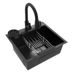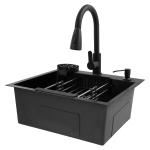 Міцний Продукт в основному виготовлений з нержавіючої сталі 201 з нанопокриттям, стійкий до корозії, подряпин, легко чиститься та може забезпечити гарний зовнішній вигляд і гігієнічні умови навіть після тривалого використання. Безкоштовна експлуатація Розмір 19,69 x 17,72 дюймів дозволяє помістити більше посуду або інгредієнтів одночасно, у поєднанні з поворотним на 360° висувним змішувачем із двома режимами виходу води для колонки води та душа, що робить роботу більш вільною та дає вам приємні враження від миття. Ефективна кухня Висувний кран, мийка для чашок, зливний кран і дозатор для мила дозволяють зосередити кухонну роботу в одному місці, роблячи роботу на кухні більш ефективною. Швидка розрядка Х-подібна напрямна лінія, міцна зливна стійка та зливний отвір діаметром 4,33 дюйма забезпечують швидкий злив, блокують велике сміття та запобігають запаху стічних вод. Вишуканий дизайн Продукт має малошумні прокладки та антиконденсатні шари для зменшення шуму, запобігання потрапляння вологи в шафу та створення тихішого та гігієнічного кухонного середовища. Модний зовнішній вигляд Простий колір в поєднанні з плавними обтічними лініями робить виріб дуже модним і вписується в більшість сучасних стилів інтер'єру. отвори для захисту від переливу Вони можуть запобігти переповненню раковини та зберегти кухонну підлогу сухою. Зарезервовані монтажні отвори Зарезервовані отвори на раковині дозволяють вибрати місця установки змішувача, дозатора мила та мийки чашок відповідно до ваших потреб. Заявка Цей продукт можна широко використовувати на кухнях, ресторанах, кафе, барах, готелях, будинках, магазинах молочного чаю, десертних магазинах та інших місцях. Технічні характеристики Матеріальний: 201 нержавіюча сталь, мідь Процедура: Нанопокриття Колір: Чорний. Стиль: Сучасний Форма: Прямокутна Потрібна збірка: Так. Тип сердечника клапана: керамічна вставка клапана Тип монтажу: стільниця/вбудована/підконструкція Режим виходу води з крана: колонка, душ Довжина змішувача: 40 см Корисний діаметр чашки мийної машини: ≤ 100 мм Діаметр зливного отвору: 110 мм Ємність дозатора мила: 300 мл Специфікація впускної труби: 1/2 дюйма Внутрішня глибина мийки: 20 см Зовнішні розміри мийки: 50 х 45 см Розмір упаковки: 53 x 48 x 25,5 см/20,87 x 18,9 x 10,04 дюймів Вага брутто: 6,2 кг/13,67 фунтів Вага нетто: 5,89 кг/12,99 фунтів Обсяг поставки 1 х раковина 1 х мийка для чашок 1 х кошик для сушіння 1 х висувний змішувач 1 х дозатор мила Додаткові аксесуари для монтажу Технічні характеристики | Матеріал | 201 нержавіюча сталь, мідь | Процедура | Нанопокриття | | Колір | Чорний. | Стиль | Сучасний | | Форма | Прямокутна | Потрібна збірка | Так. | | Тип сердечника клапана | керамічна вставка клапана | Тип монтажу | стільниця/вбудована/підконструкція | | режим виходу води з крана | колонка, душ | Змішувач з можливістю збільшення довжини | 40 см | | Корисний діаметр чашки мийної машини | ≤ 100 мм | діаметр зливного отвору | 110 мм | | Ємність дозатора мила | 300 мл | Специфікація вхідної труби | 1/2 дюйма | | внутрішня глибина мийки | 20 см | зовнішні розміри раковини | 50 х 45 см | | Розмір упаковки | 53 x 48 x 25,5 см/20,87 x 18,9 x 10,04 дюймів | Вага брутто | 6,2 кг/13,67 фунтів | | Вага нетто | 5,89 кг/12,99 фунтів | Поради щодо продукту 1. Перед покупкою уважно перевірте розмір виробу. 2. Будь ласка, дозвольте невелику різницю в кольорі через світло для зйомки та відхиленн